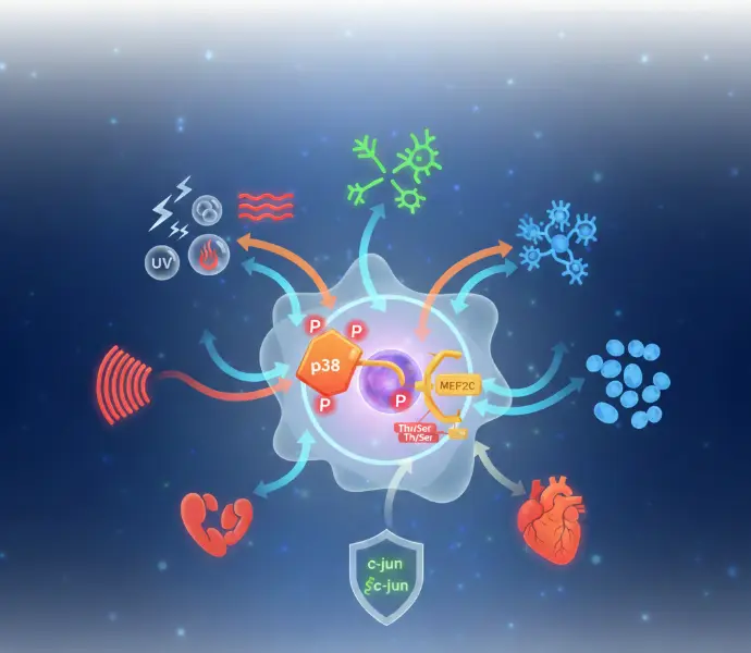 Among the many signaling pathways described in molecular biology, the p38 mitogen-activated protein kinase (MAPK) pathway has emerged as a critical mediator of stress responses and differentiation processes. In parallel, the transcription factor MEF2C (Myocyte Enhancer Factor 2C) plays a pivotal role in regulating gene expression programs across multiple tissues.